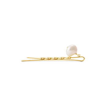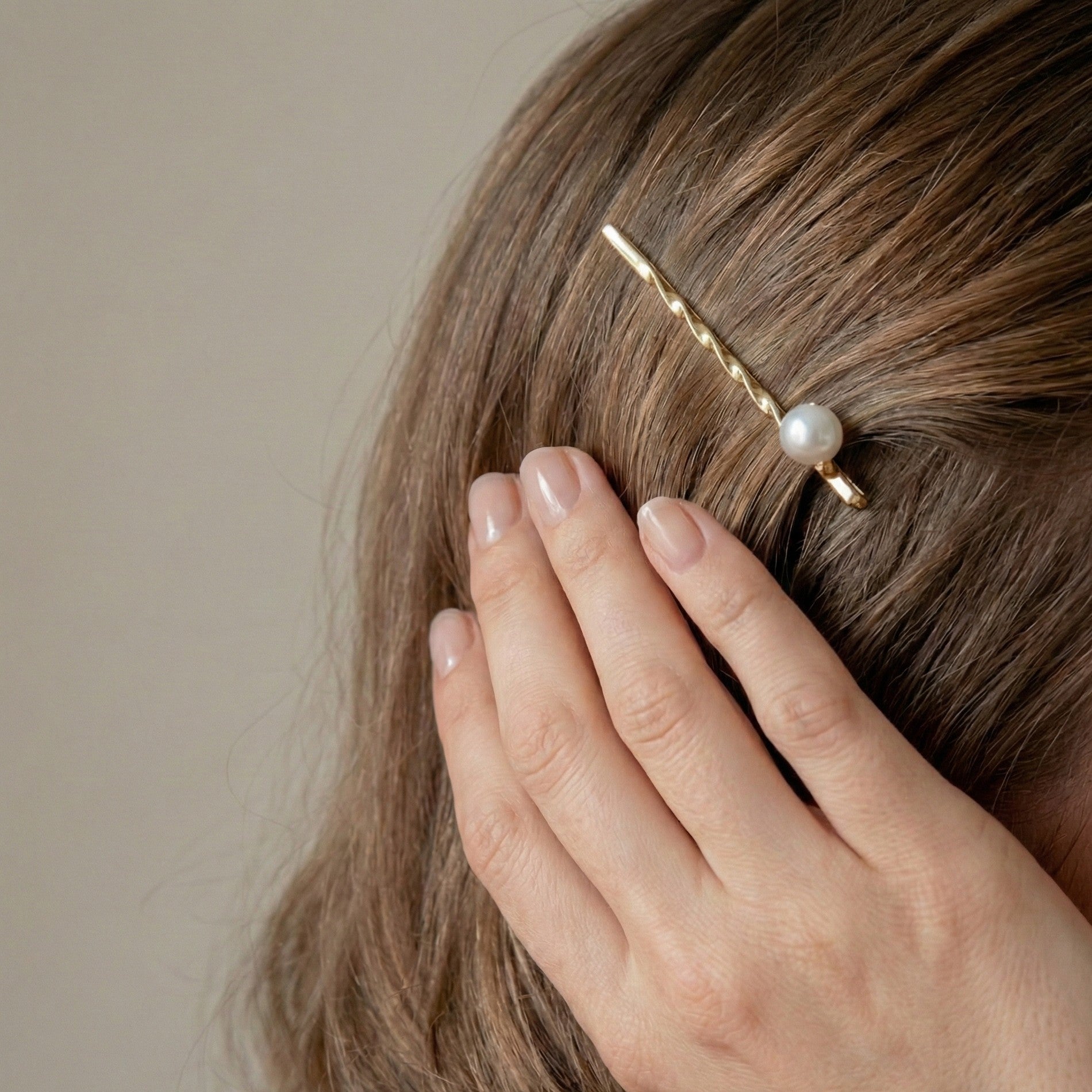 Die Pearl Pin Haarnadel ist das perfekte Finish für eine schlichte Frisur. Die Basis aus Messing ist mit 18k Gold vergoldet und sorgt für einen warmen Glanz. Ideal, um Hochsteckfrisuren, Schlichte Styles oder einen tiefen Dutt im Handumdrehen aufzuwerten. Durch das schlanke Design setzt dieser Clip einen einen stilvollen Akzent, ohne überladen zu wirken. Besonders zu festlichen Anlässen verleiht er deinem Outfit eine feine, elegante und luxuriöse Note.