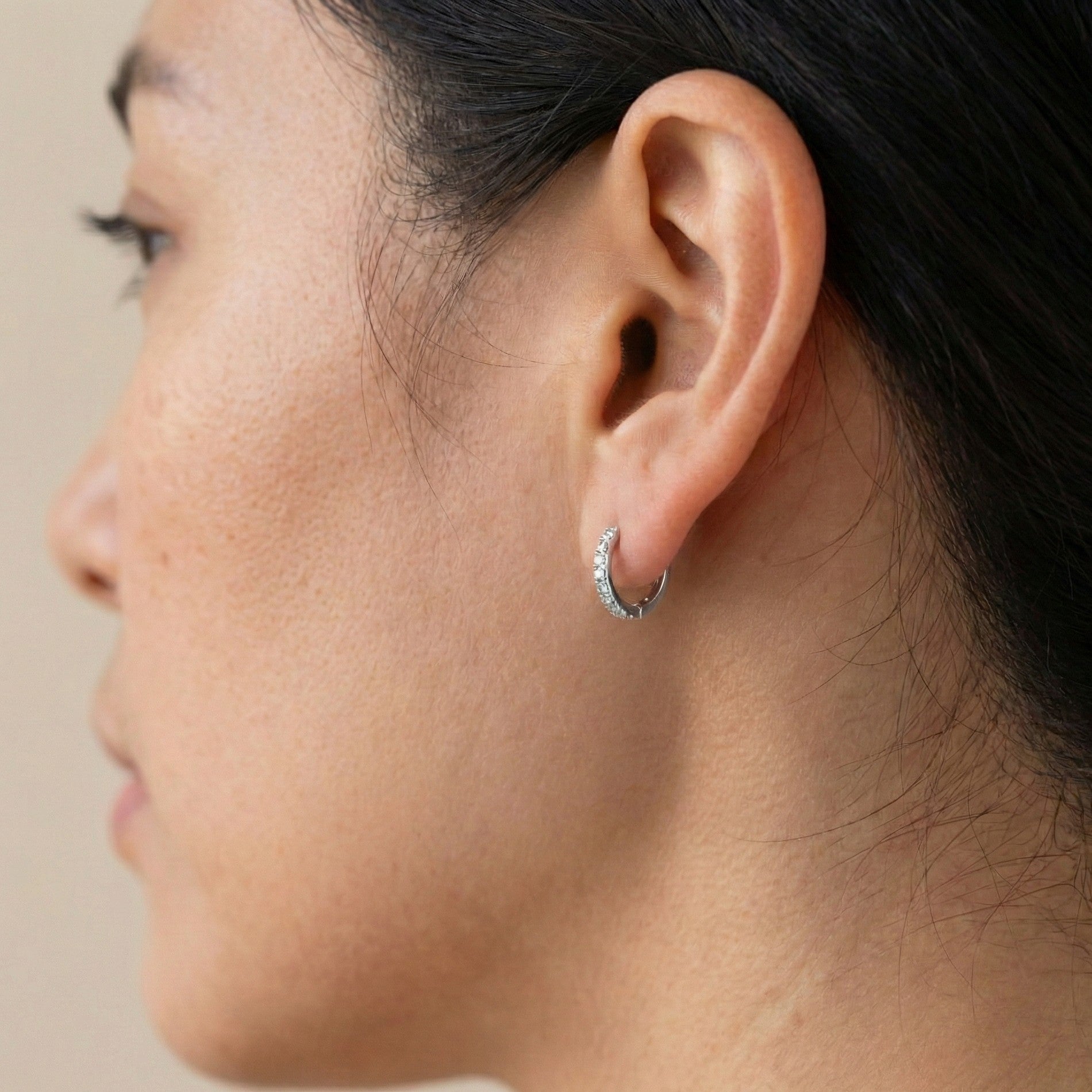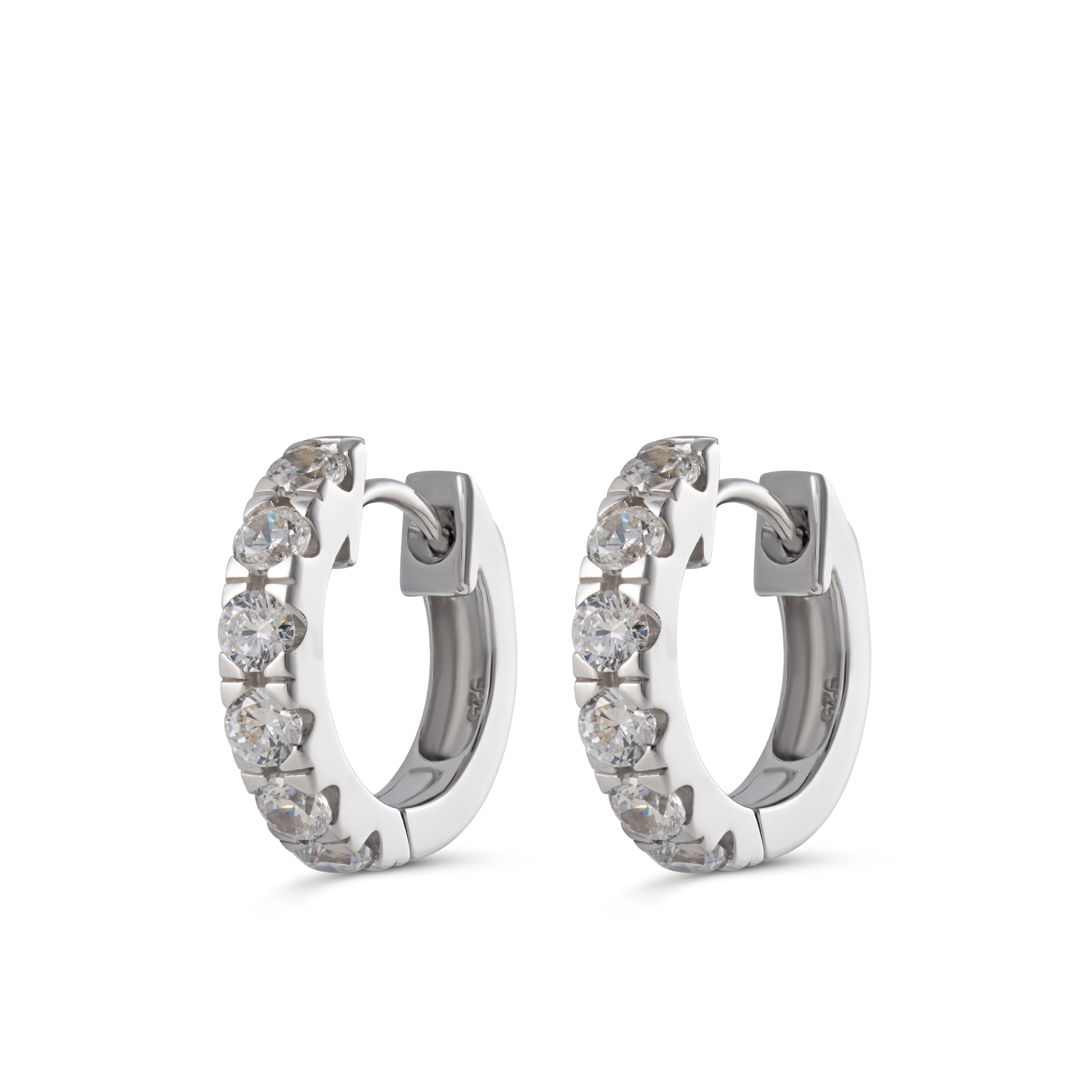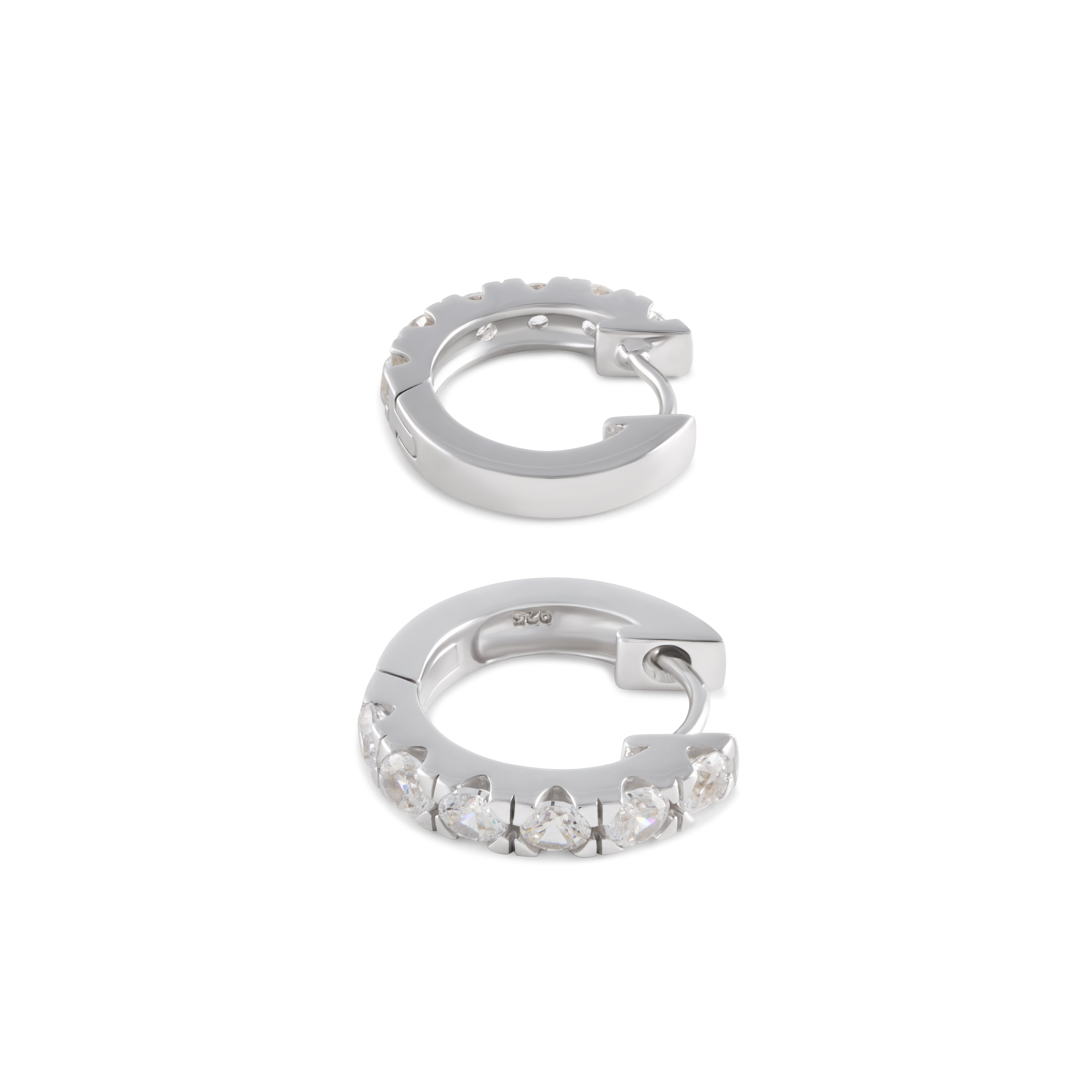Diese Creolen aus 925 Sterlingsilber sind ein Klassiker für alle, die Glanz lieben. Auf der Vorderseite sitzt eine Reihe größerer klarer Steine. Dank der offenen Fassung fangen sie besonders viel Licht ein und funkeln intensiv bei jeder Bewegung. Die hochglanzpolierte Oberfläche und die Rhodinierung verleihen den Ohrringen einen besonders hellen Silberglanz und schützen die Oberfläche zusätzlich vor schnellem Anlaufen. Der praktische Klappverschluss sorgt für sicheren Halt und angenehmen Tragekomfort. Perfekt, um ein schlichtes Outfit im Handumdrehen aufzuwerten oder als strahlender Begleiter zu besonderen Anlässen.